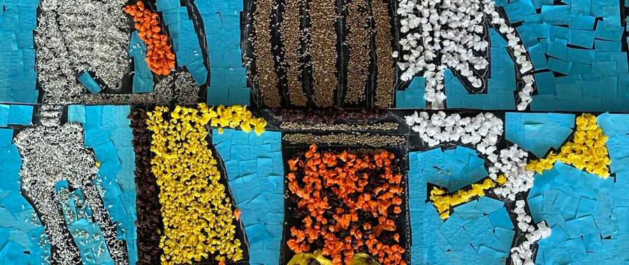 En la base de la ofrenda, los más pequeños del colegio —nuestros alumnos de preescolar— realizaron una colorida interpretación de “La Catrina” de José Guadalupe Posada, elaborada con semillas y papel crepé boleado, demostrando su creatividad y amor por nuestras raíces.
